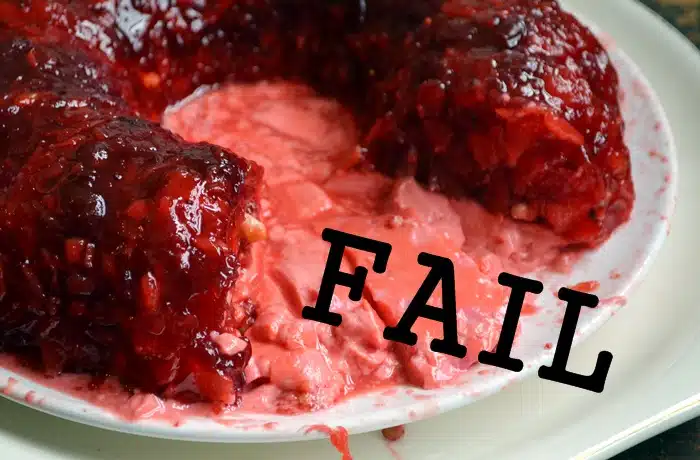 The next time I tried (no way was a cranberry gelatin mold beating me!) I stuck to just one layer — the first one — and bid the sour cream adieu.