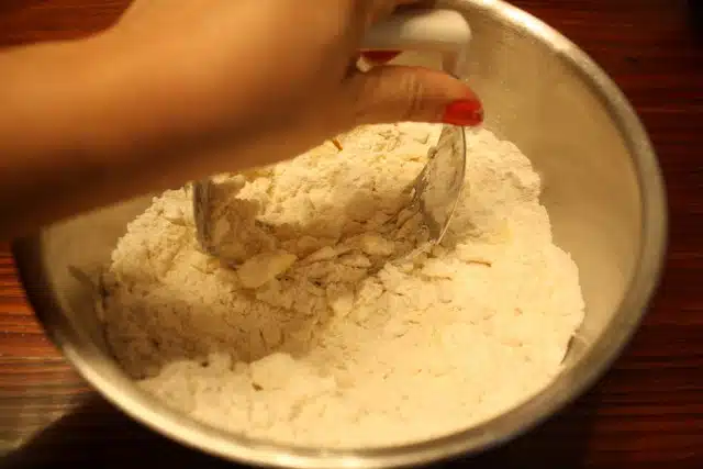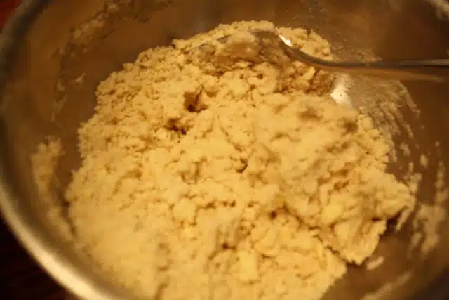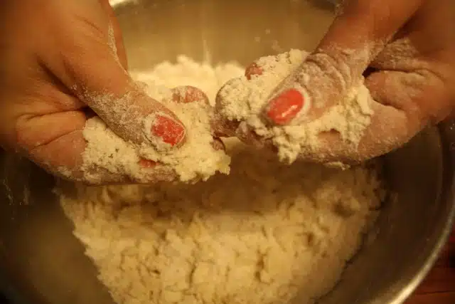 You’ll know the dough is ready when the mixture looks like cornmeal with some pea-sized bits of butter remaining.