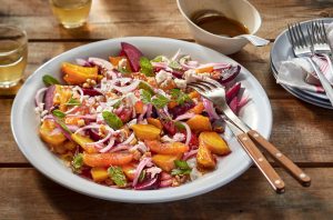When we made this watermelon salad for a friend, he gave it a lovely compliment: “This tastes,” he said, “like a summer garden smells.” It’s refreshing, sweet, salty, herbal, and tangy—a great antidote to a hot summer day.