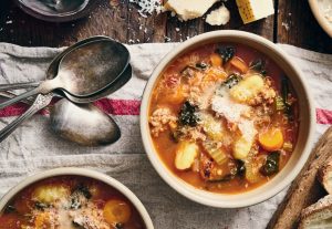 Photo Credit: Clare Barboza and styling by Gretchen RudeIn the 1980s, Yankee ran a series of culinary profiles called “Great New England Cooks.” This opened our food coverage up to a wider range of cuisines: Lebanese, Greek, Hungarian, Chinese, Portuguese. For the latter, we featured Puddie Gilmette’s recipe for classic caldo verde (green broth), a delicious Portuguese Kale and Chouriço Soup.