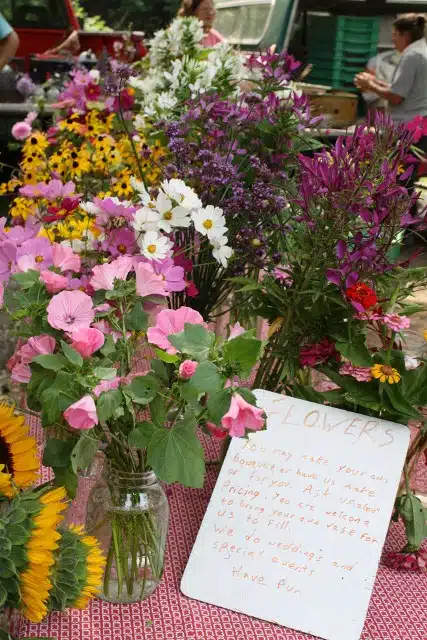 The market runs 9am-2pm on Saturday. To get there, take Exit 2 from I-91 and turn west on Route 9. The market is 1/2 mile on the left, just past the Creamery Covered Bridge.