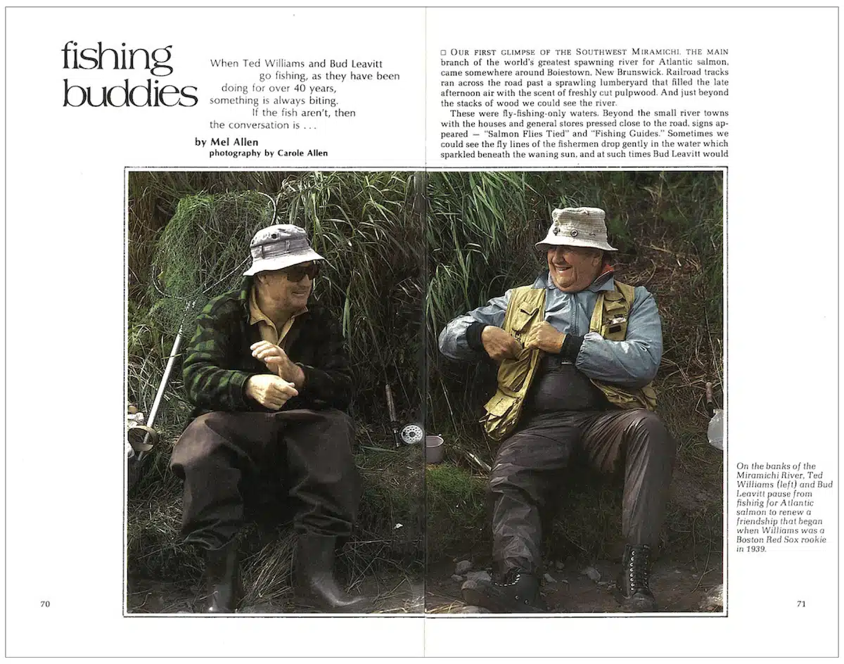 I came to Ted Williams’s fishing lodge, perched beside a deep salmon pool on the Miramichi River in New Brunswick, in late September 1981, when he was in his early 60s. I was there because I had become friends with Bud Leavitt, the sports editor for the Bangor Daily News, whose ties to Williams went back decades. I was only two years into my Yankee career, and I always felt, but never asked, that Bud wanted to give me a big story.