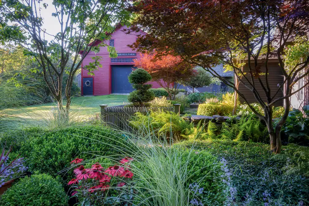 But outside is where we’ll be. It’s the gardens I’ve come for, nearly two acres, ringing out from the house like ripples. They’ve been expanding since 2000, when Joe and his wife, Paula, made this weekend retreat their full-time home—he, a retired research psychologist about to turn serious photographer; she, the executive director of the Mojaloop Foundation, an offshoot of the Bill and Melinda Gates Foundation. For the past 20 years, Joe has honed his artist’s eye, photographing gardens in the U.S. and in Europe for publications throughout the world—all while learning, planting, and creating in his own backyard.