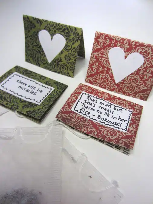 - Small piece of thick paper (about 1 1/2″x 1/2″ per tea bag)