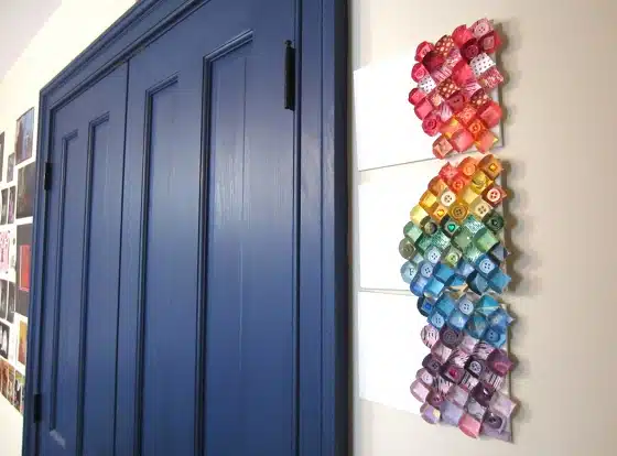 Photo Credit : Bonnie Thomas - The canvas boards are light enough to attach a ribbon or string to the back for hanging. I glued mine into place. After the glue dried I hung them on the wall.