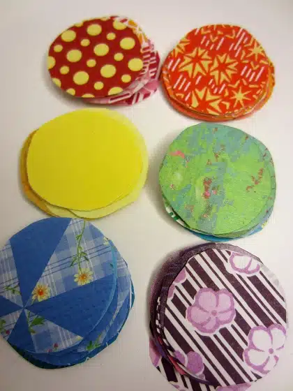 - Cut circles from your papers. Make sure they are all the same size. Use your small round tracing object for this part of the project if you do not have a paper cutter.