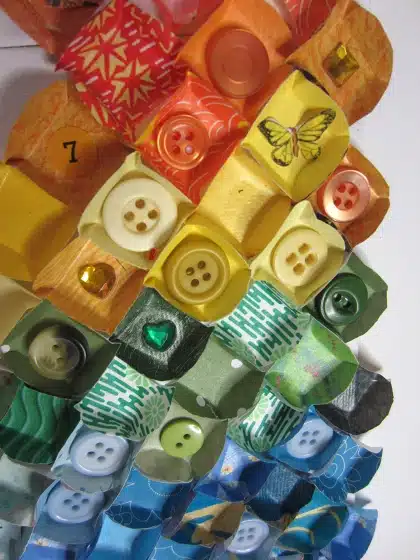 - If you like you can take the project another step further and add small images, buttons, sequins, or beads. Simply glue them to the center of the squares.
