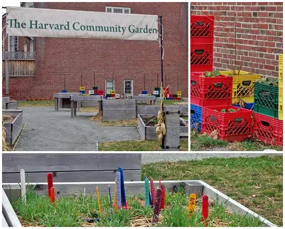 Parking and crosswalks aside, Harvard Square was made for walking, and heading down a side street will often reward you with an architectural, shopping, or dining treat. On my last visit I wandered past the Harvard Community Garden on Holyoke Street, which broke ground in April 2010, and includes raised beds for growing food, perennial borders, sections for classes, and open green space.
