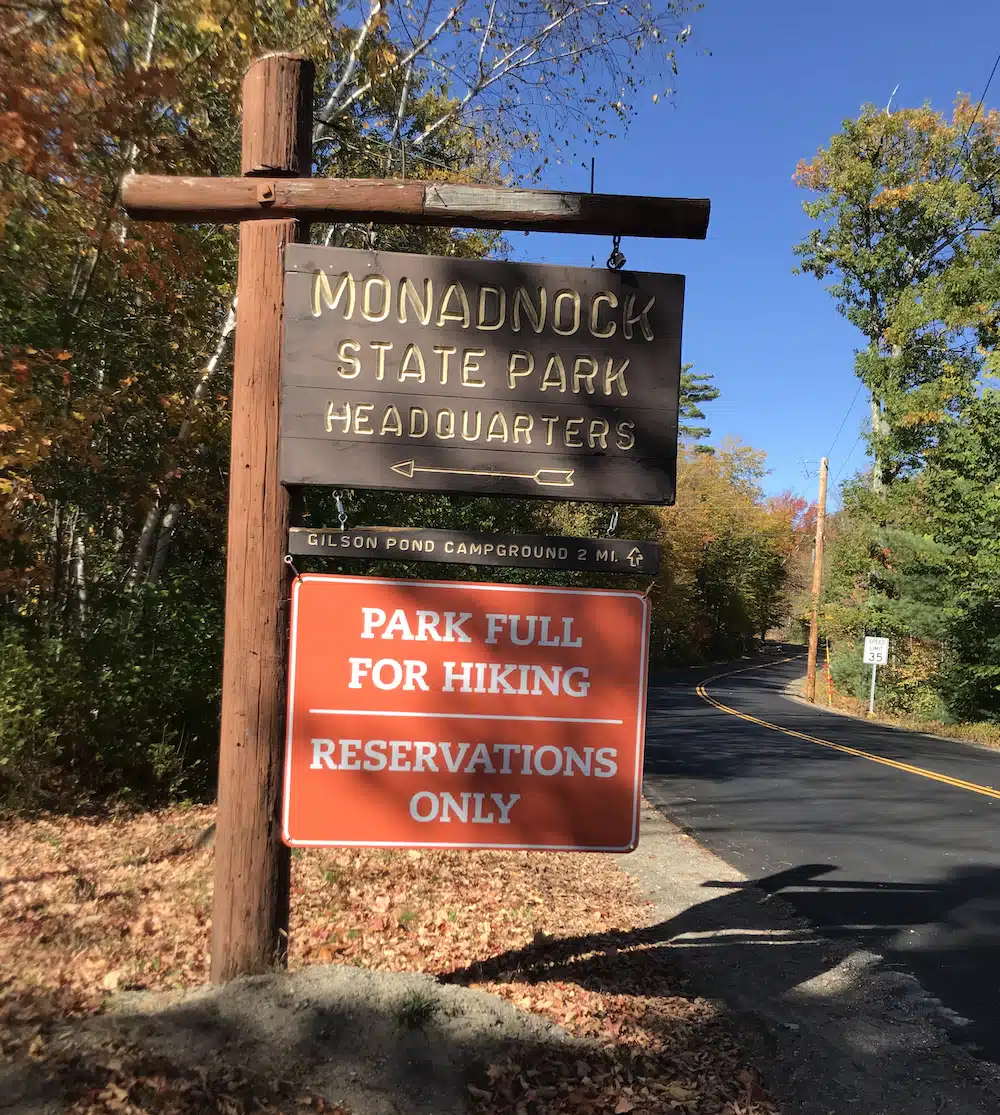This past Columbus Day weekend did its best to let us forget, if only for a little while, how many of the simple pleasures we’ve lost. The sky was blue, clouds were light, temperatures were in the 50s and low 60s. If you wanted perfect conditions for climbing a mountain, this came close. I have been on Monadnock on previous Columbus Day weekends and seen the summit as crowded as a summer beach, but this year park rangers set a limit of 250 cars for the parking lot at the main entrance, where the most popular trails begin. And for the first time I can recall, the dozens of cars parked along the country roads near the side trails had tickets on their windshields. The rangers wanted to keep the numbers down for safety; the hikers were too eager for views and freedom to be easily deterred.