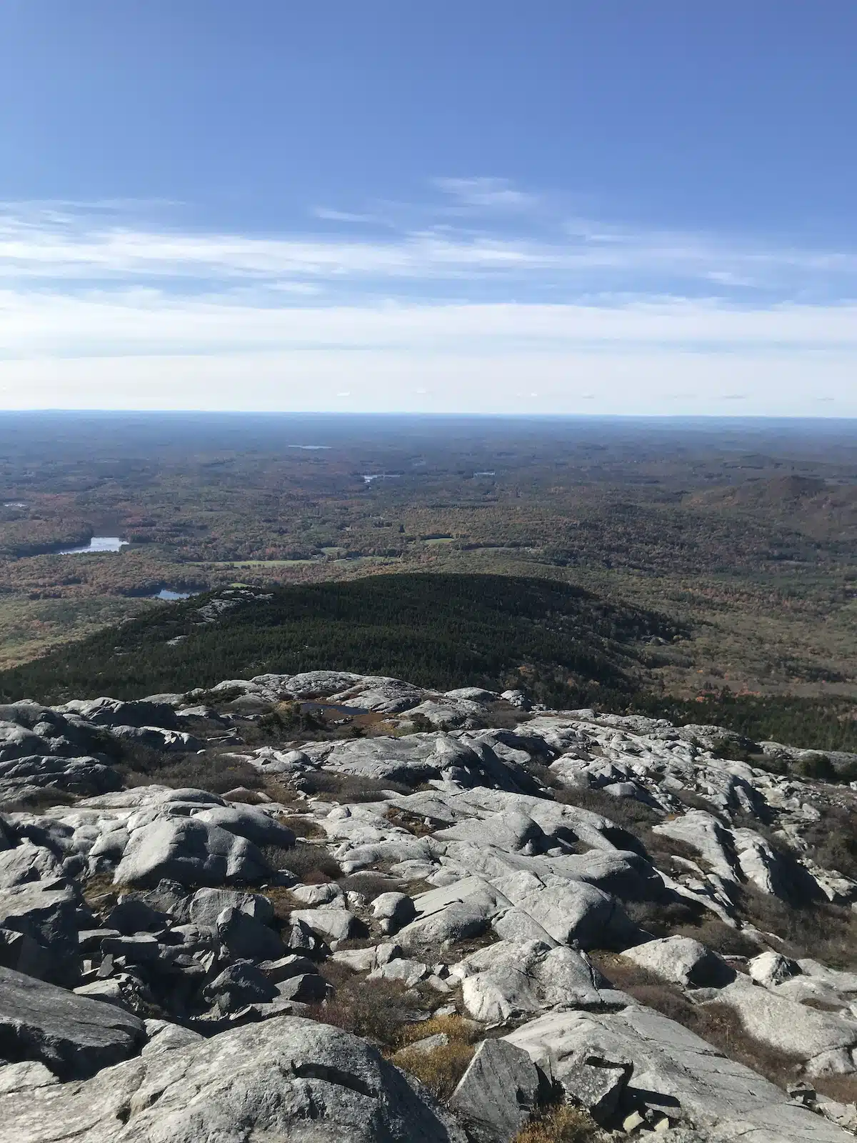 This bald peak, people say, is the only place where you can see all six New England states at one time. I have climbed the mountain alone and with friends and with my sons many times, however, and I have never had that experience. On clear days, I am certain I have seen the outline of Mount Washington, and once I might have convinced myself there was a glint of sun reflecting off the John Hancock building in Boston. Maine? Connecticut? I do not know what Rhode Island would look like, actually. The smallest state — maybe a speck of high ground hoping to be included?