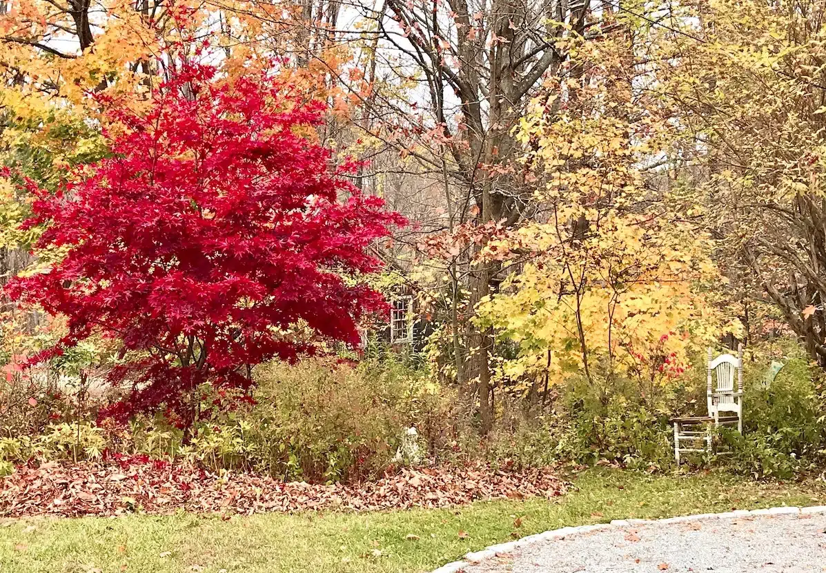 I want to remember the crimson burst of the Japanese maples we see on our walks through town and up the hill where the pretty houses line the quiet street. The town has its own Facebook page, and Annie says people have been posting their Japanese maples, a message of brightness sent to neighbors to ward off the coming days of lessening light.