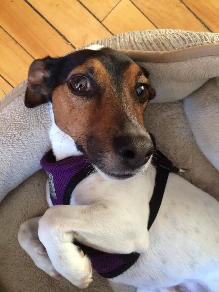 Rudy, our Jack Russell, comes to work with me each morning. By that I mean he walks behind me up the stairs to my second-floor office, which looks out one window to the road, the other to the river. There is a wicker basket against the wall behind my desk. He jumps into the basket, lined with a blue blanket, and in our now-year-long ritual, I cover him with an orange fleece, a pullover that once I called my own but which now and forever belongs only to him. He is 12, and his lifespan has passed the three-quarters mark. I am certain the fleece will follow him from this life to the next.