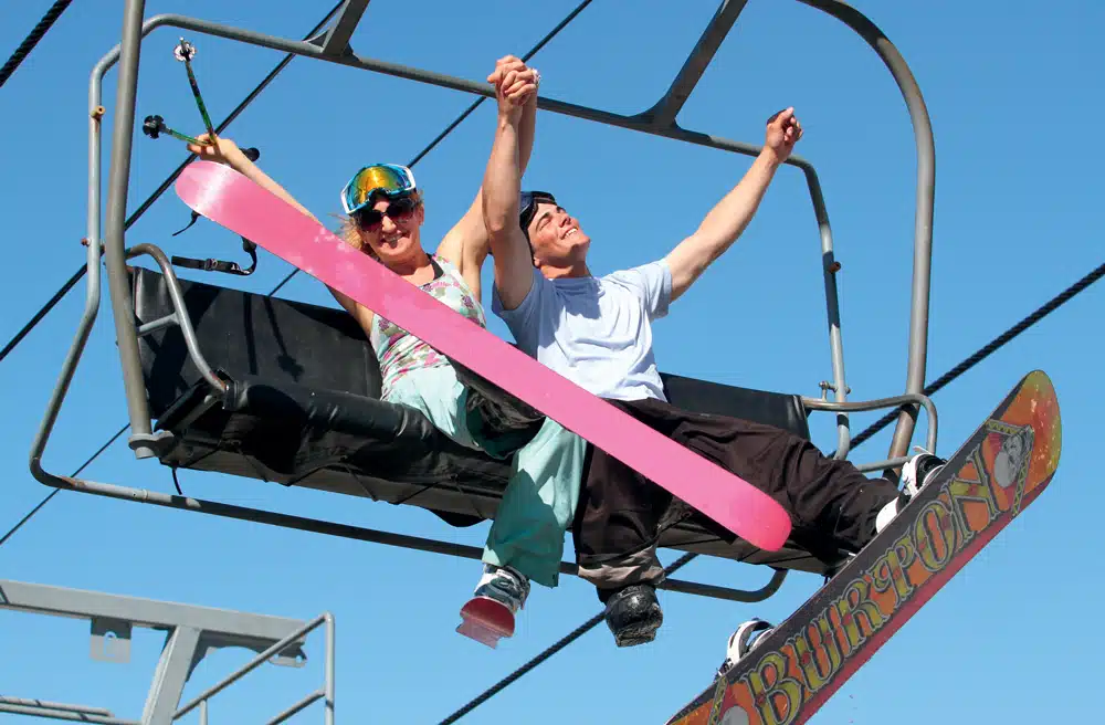Joy is infectious at this time of year. Spontaneous parties erupt trailside and on the deck of Bullwinkle’s, Sugarloaf’s mid-mountain lodge. As the day progresses, the party moves to the Beach, that area in front of the base lodge where you can sit back, relax, sip a cool one, and watch the antics of those still on the mountain. The party reaches a crescendo during Reggae Fest, when live bands perform outside during the day and inside at night.