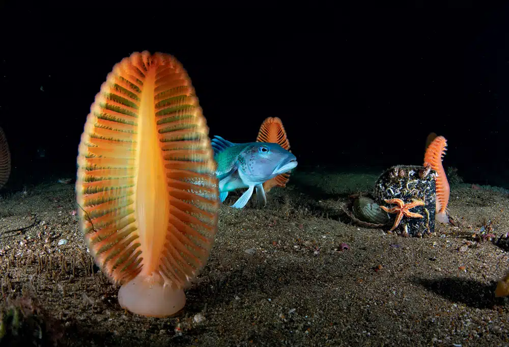 Although Skerry has photographed in oceans around the world, New England’s waters hold a special place in his heart. “To make a perfect picture in my backyard is a quest for me that rivals or exceeds anything else I have ever done,” he says. “These waters soothe my soul, and I want others to benefit from that.” Increasingly now, he’ll be working in the Gulf of Maine, which stretches from Cape Cod to Atlantic Canada. One focus: the marine life in Cashes Ledge, a 22-mile-long underwater mountain range that is home to the largest and longest contiguous kelp forest in the North Atlantic. “It’s unlike anything I have ever seen in New England,” he says. And since the Gulf of Maine is warming faster than any other ocean, there is a real urgency to the project. “This is a place that is suffering greatly now. If I can bring the spotlight to that, to celebrate the things that are still here, and show how it’s changing and to look at solutions, then I will have done something good.”