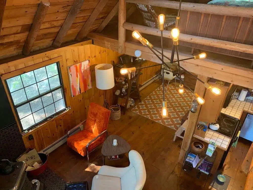 Entire cabin (sleeps 2); 1 studio bedroom, 1 bathroom; average $118 per night.