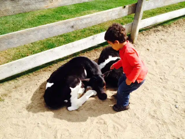 My son being a huge animal fan, we kept our Davis visit focused on the petting zoo. It proved to be quite day for him. He was able to pet his first cow, take a gander at his first emu (“Whoa, look at those big birds!”), and hop on a big trailer for a meandering hay ride that took us around the property. We grabbed a quick lunch, then it was off to the playground, where he pushed around a few play lawnmowers before asking to be picked up and nearly collapsing in my arms in total exhaustion. And he didn’t ask for his mommy once. I call that a total success.