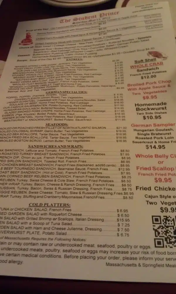 “I’ve been coming here for 50 years!” my dad announces as we sit in the back dining room of The Student Prince in Springfield. The waiter smiles. I’m sure it’s not the first time he has heard that. Looking around, I see a crowd that my grandmother, Rose, would have described in her northern Italian dialect as “tüt gris.” All gray. The seniors who make up most of today’s lunch crowd have probably also been coming here for just as long.