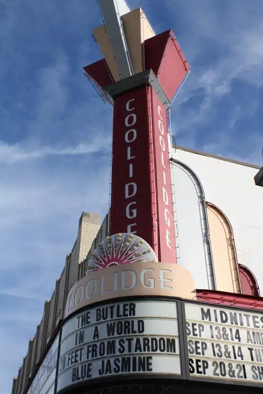 The cultural and commercial hubs of Coolidge Corner are located just across Harvard Street from each other. The first is the Coolidge Corner Theater, known as “The Coolidge.” The building was first built as a Universalist church in 1906 but was purchased and transformed into an Art Deco theater in 1933.