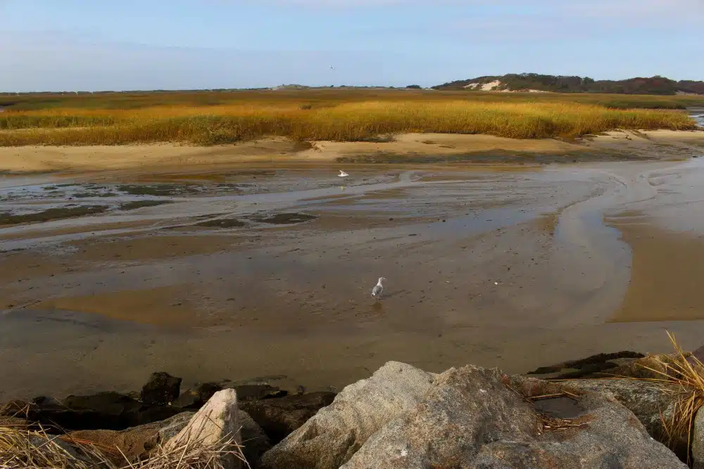 View of the Pilgrim Monument from the flats. Photo Credit : Annie Graves