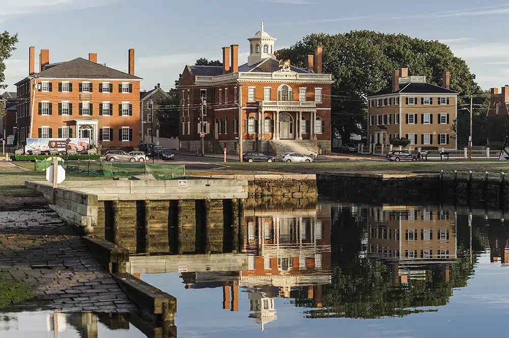 Historic buildings along the Salem Maritime National Historic site includes the Custom House at center.