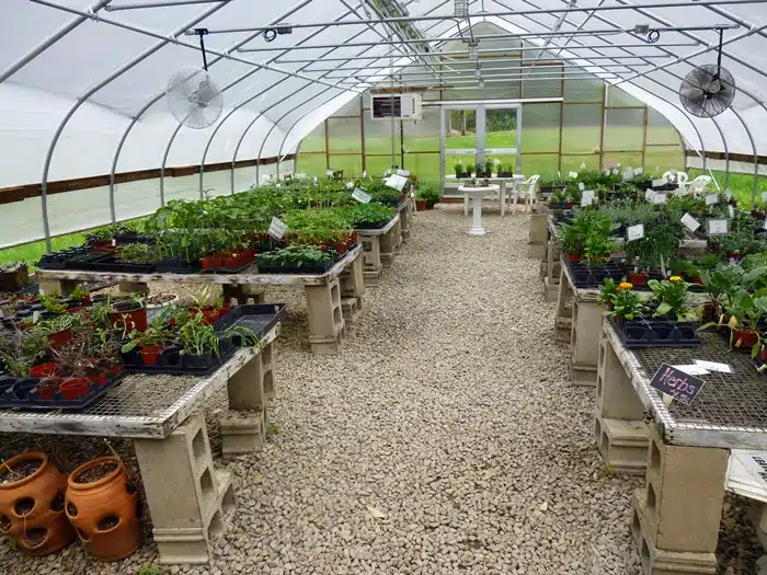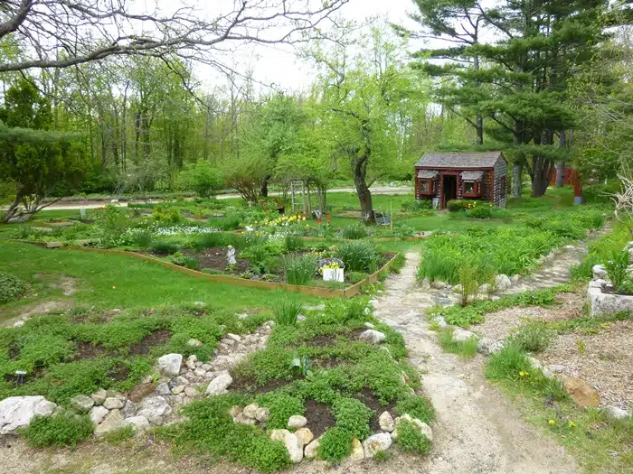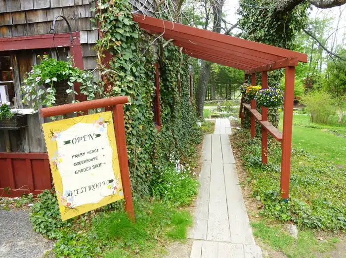 As you leave the Herb Shop, swing around and head toward the gardens and greenhouse.