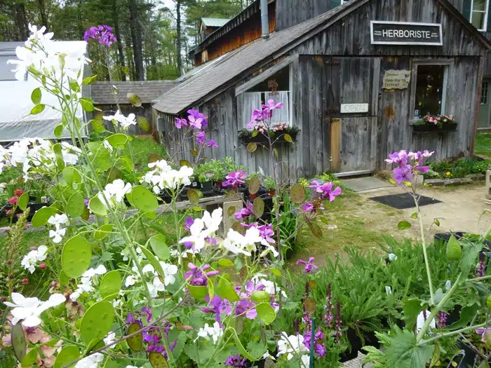 Follow the path to the Herboriste, which offers plants and other garden gifts for sale like birdhouses, seed packets, and potted herbs.