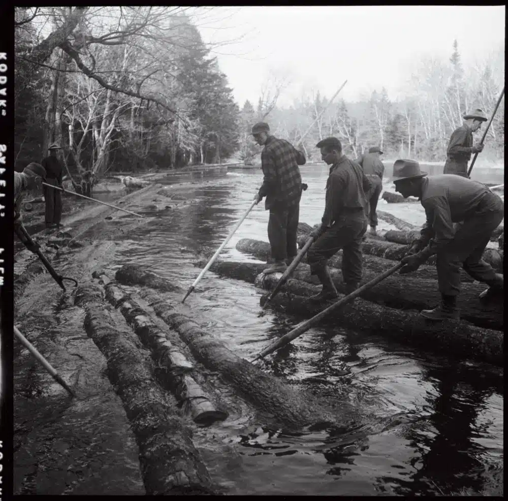 As we open one of the manila envelopes, Johnson says, “I’ve seen maybe only 10 percent of what we have. There are surprises all the time.” Spilling out on a table are images of a river drive carrying timber from the North Woods to paper mills; workers on the family blueberry farm where Ruohomaa grew up, in Rockland, Maine; an island in winter, cold and harsh and strangely beautiful in black and white. “In the summer it is a bit too idealistically beautiful,” Ruohomaa once wrote of photographing Monhegan Island. “In the winter it has guts and drama and doesn’t wear such a pretty face. Anyway, it has the kind of meat my camera likes.”
