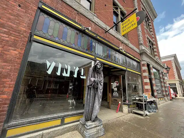 Across from it, a life-size grim reaper — or is it the Ghost of Christmas Future? — stands sentry in front of an emptied-out Buch Spieler Records, a finalist for best record store. The statue perfectly captures this eerie moment in Capital City history.